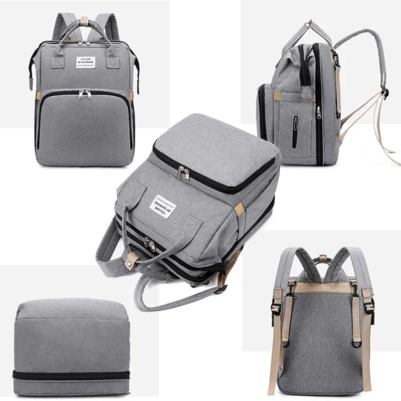 Многофункционалната раница Click е създадена, за да предложи максимално удобство и сигурност на родителите по време на всяко пътуване или разходка с бебето. Тя комбинира в себе си практична чанта за пелени и сгъваема кошара с мек матрак, което я прави идеален спътник както за кратки излизания, така и за по-дълги пътувания. Благодарение на интелигентния си дизайн, раницата позволява лесно трансформиране от просторна чанта с множество отделения в удобно легълце или повивалник, където вашето бебе може да почива или да бъде преобуто по всяко време.