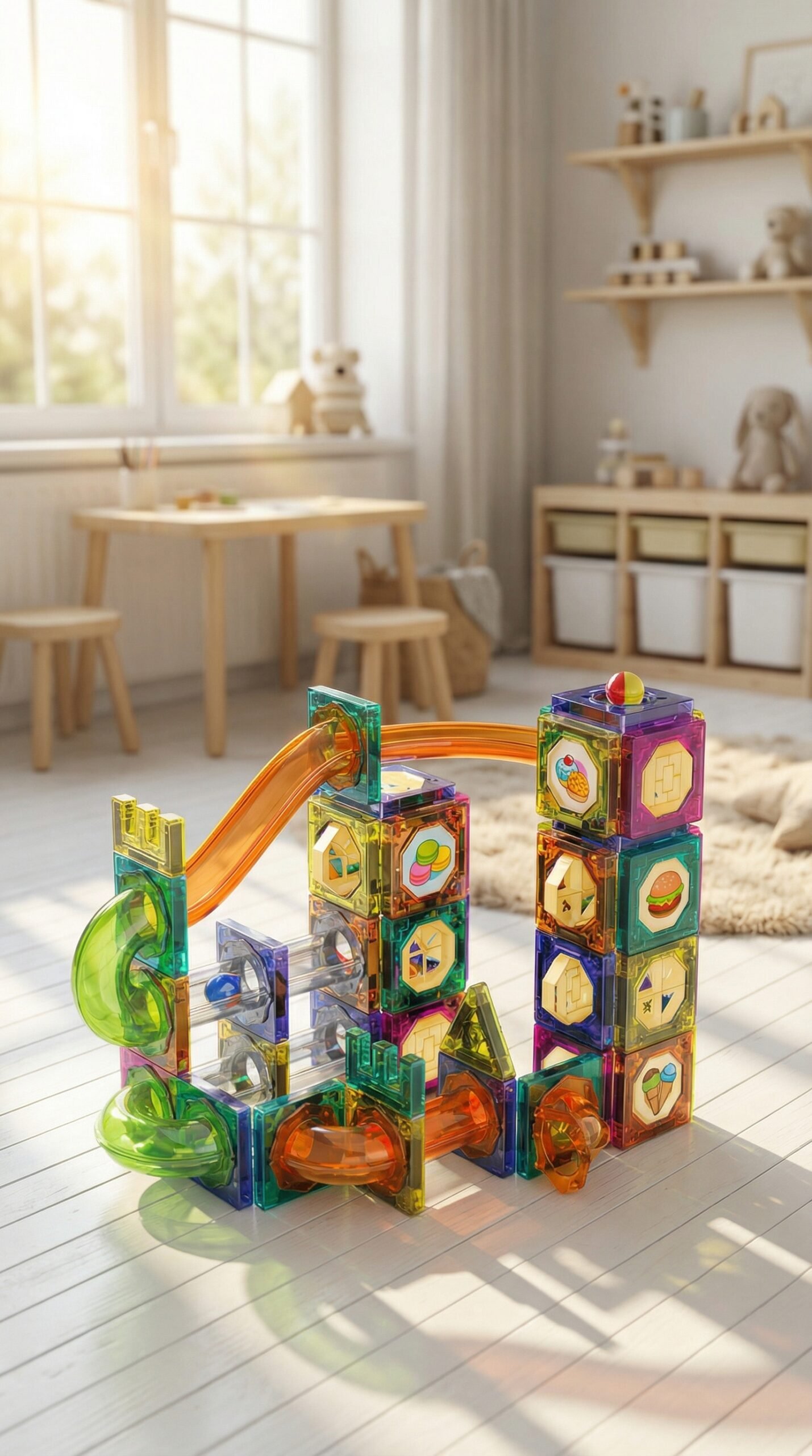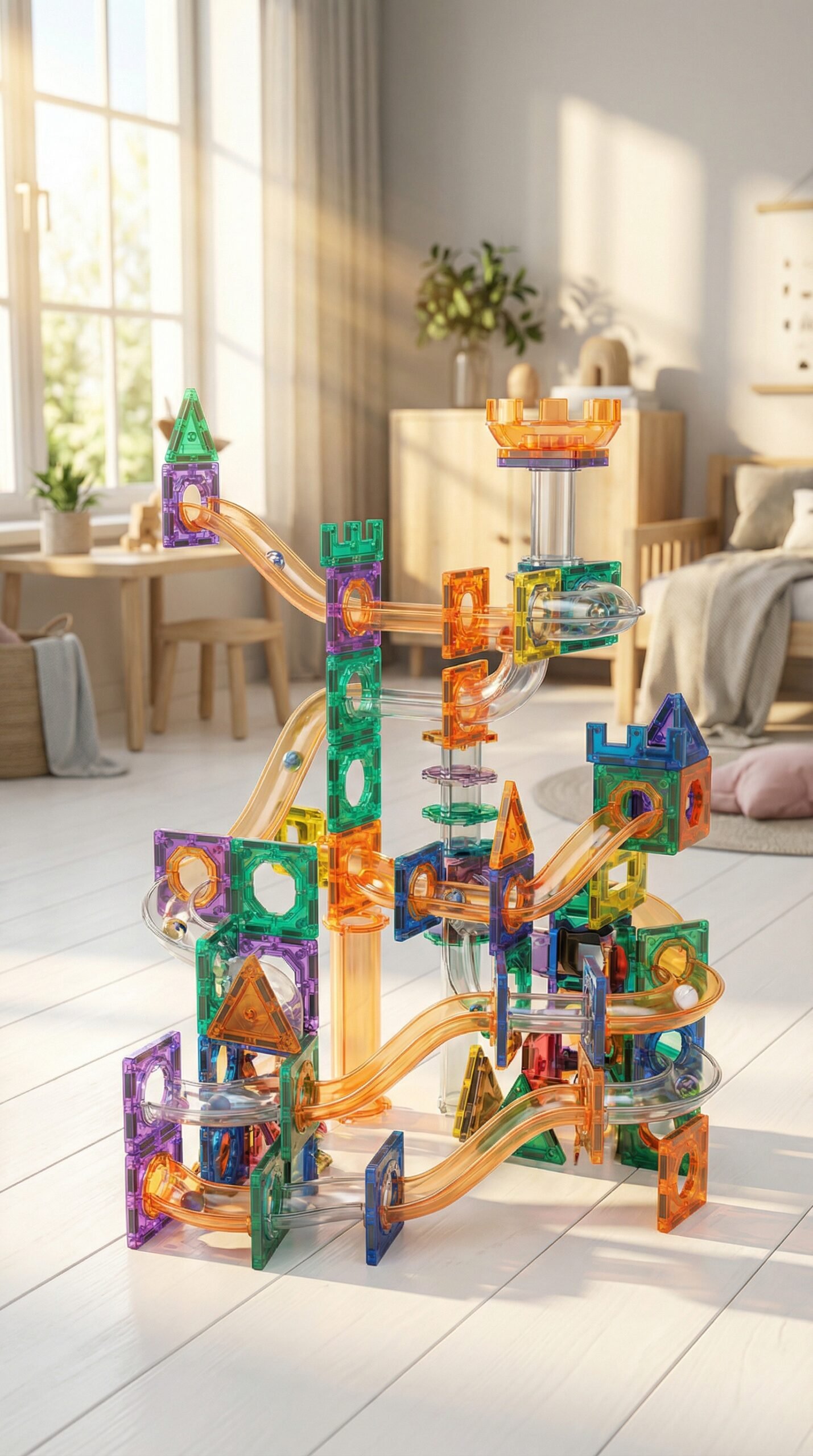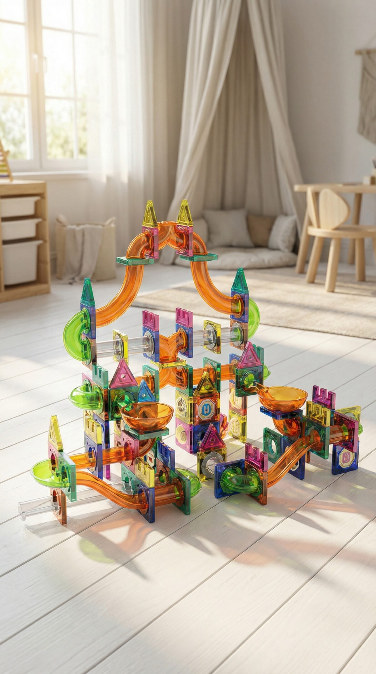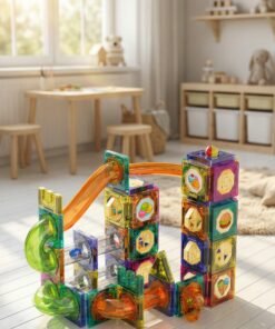 Осигурете часове спокойствие за вас и безкрайно забавление за вашето дете.Този комплект комбинира два любими вида игра – магнитно строителство и писти за топчета. Децата могат да изграждат високи кули, лабиринти, тунели и спирали, като наблюдават как топчетата се плъзгат по различните траектории. Играта развива логика, креативност и пространствено мислене, докато предлага часове увлекателно забавление.